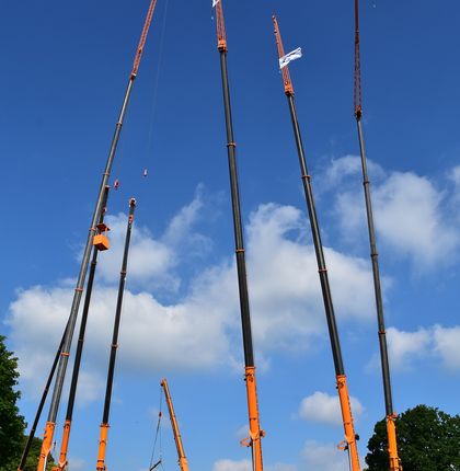 Auch bei normalen Kranarbeiten kommen Traversen oder Spreizen zum Einsatz. Mit maßgeschneiderten Lösungen geht Bäsmann auf individuelle Ansprüche ein. Weil Kran- und Bergungsgeschäft Tagesgeschäft ist, ist Bäsmann einfach nah dran.